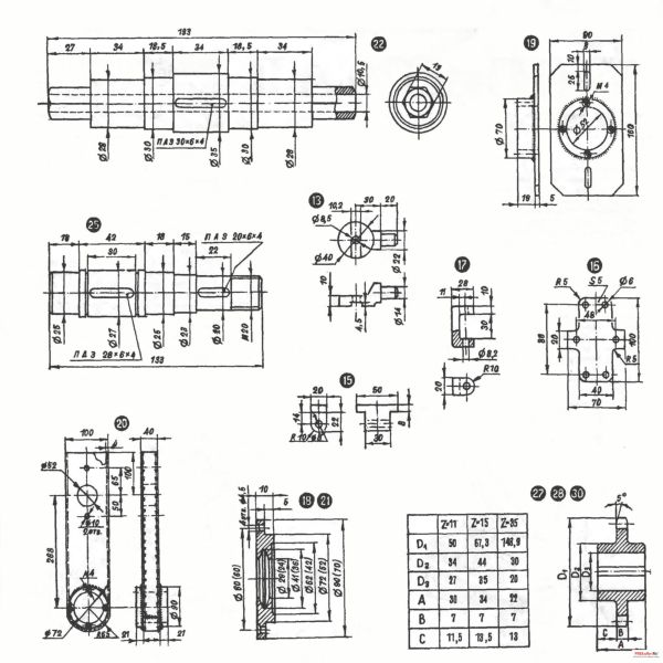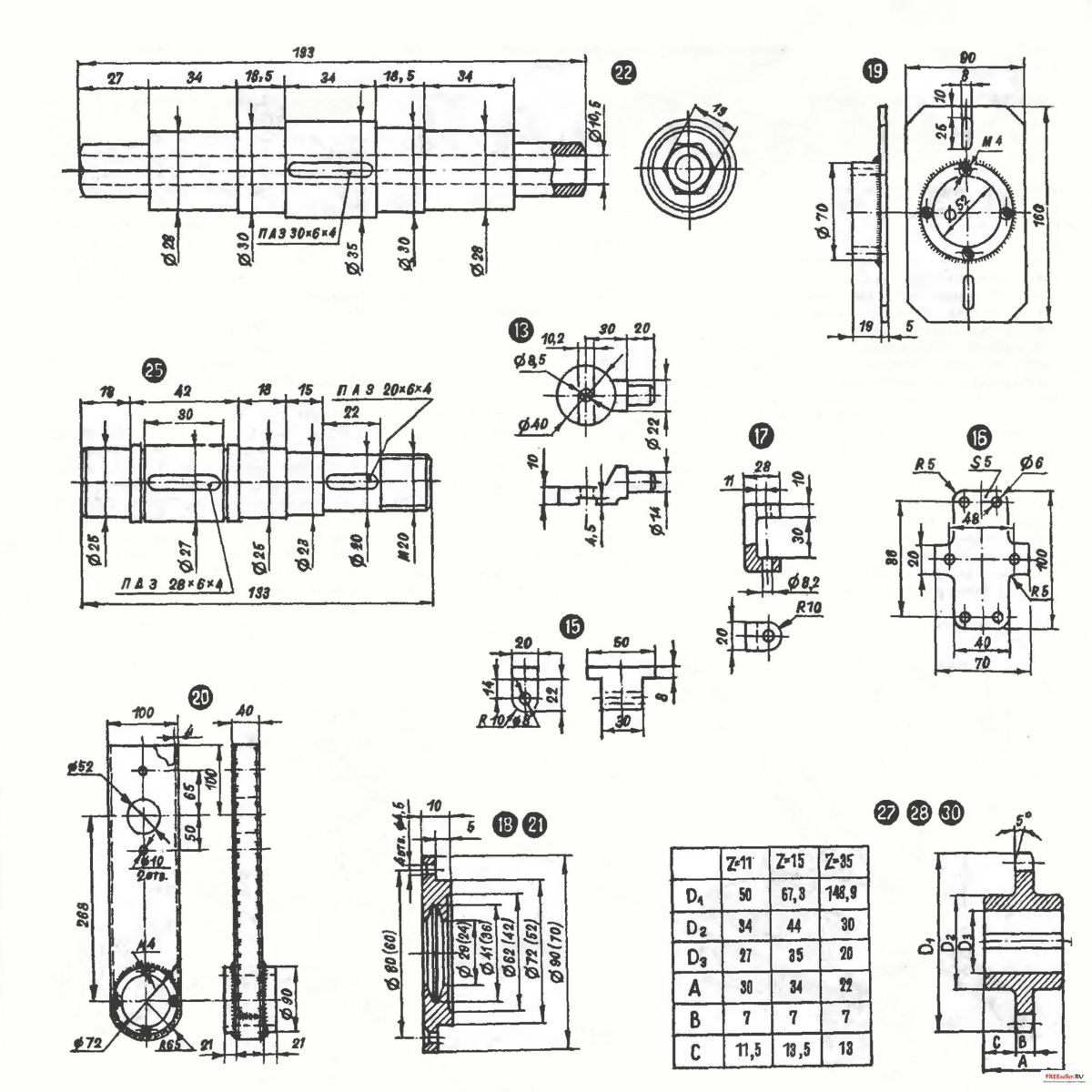 Для мотофрезы потребуются три звездочки - две из них (z-35 и z-11) располагаются на промежуточном валу и одна (z-15) на рабочем. Все звездочки вытачиваются из стали, но возможен вариант сварной конструкции: ступица - отрезок подходящей трубы и диск - стальная пластина толщиной 7 мм.