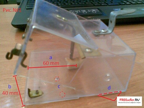 b) Ширина входа 4 см (или ширина спичечного коробка, спич.коробок можно подставить в качестве лекала).с) На некоторых поддискетниках имеются стопора-защёлки, их необходимо сточить или срезать, чтобы они не мешали свободному падению верхней крышки (это можно сделать напильником, пилкой для ногтей или попробовать срезать ножом).