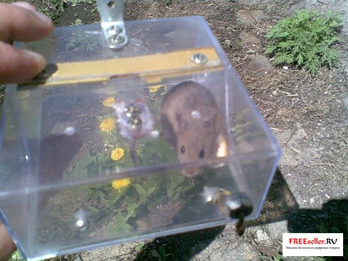 5) Некоторые полезные советы по "модернизации" представленной мышеловки. Некоторые девушки панически боятся мышей, и одна только мысль о том, что придётся выпускать мышь и находится в это время рядом с ней - пугает их до смерти:)) Таким девушкам советую проделать в верхней крышке мышеловки миллиметровое отверстие и закрепить там петельку из металлической проволоки (например,канц.скрепки). Когда вам нужно будет выпустить мышь, привяжите к этой петельке верёвочку, поставьте мышеловку на землю и приподнимите крышку мышеловки за верёвочку. Если вам по прежнему страшно и вам кажется, что мышь кинется к вашим ногам:))), то можно поискать поблизости прут или ветку и привязать конец верёвки к ветке. Вам останется только отойти на "безопасное" расстояние и приподнять с помощью импровизированной "удочки" верхнюю крышку мышеловки и помахать вслед удирающему и одуревшему от счастья и свободы микки-маусу:))) Парням-энтузиастам могу предложить - оснастить представленную мышеловку "сигнализацией". Можно вытащить из музыкальной поздравительной открытки микросхему и приклеить её на корпус мышеловки, затем разместить два контакта на верхней и нижней крышках мышеловки. Когда мышеловка захлопнется, контакты сомкнутся и заиграет музыка, оповестив вас об очередном улове:)))