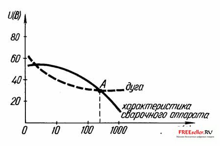 Рис.3. Вольт-амперная характеристика сварочного аппарата на постоянном токе.