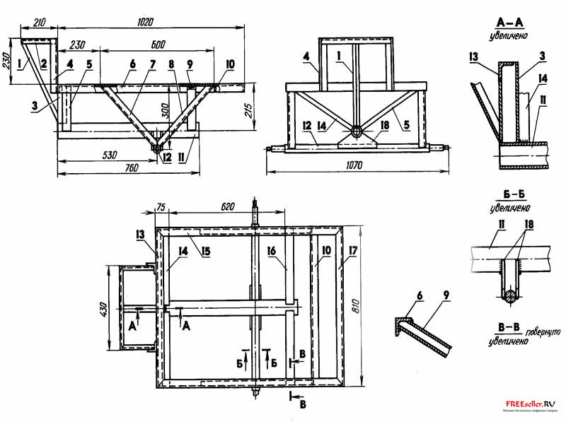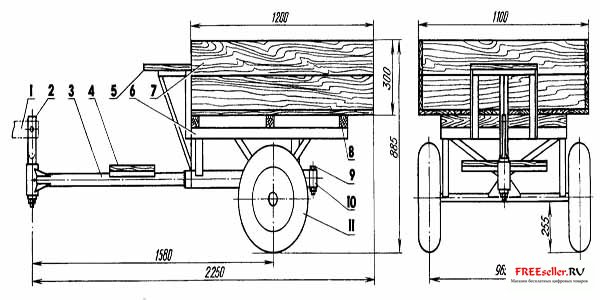 Рис.1. Конструкция самодельного прицепа для мотоблока: