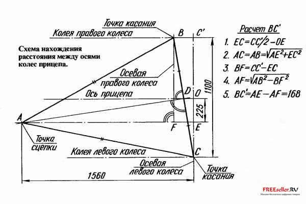 Рис.2. Схема нахождения расстояния между осями колес прицепа.