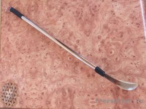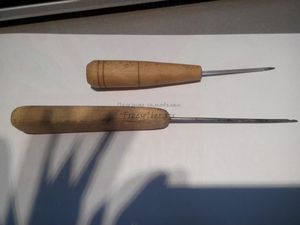 Устройство изготавливается своими руками из стали; детали 1, 2, 4 - из пластины толщиной 2 - 3 мм, их острые наружные кромки скругляются. Втулка и гнезда под шипы соединяются со скобой сваркой или пайкой твердым припоем. Отверстия в деталях 1,4 должны быть раззенкованы под потайные головки шурупов. Шипы могут удерживаться в гнездах трением или резьбой; заостренные концы шипов следует закалить. Имея некоторый запас шипов, их можно своевременно менять по мере износа