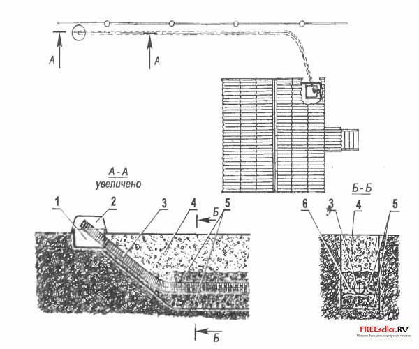 Рис.2. Устройство канализационной траншеи на дачном участке: