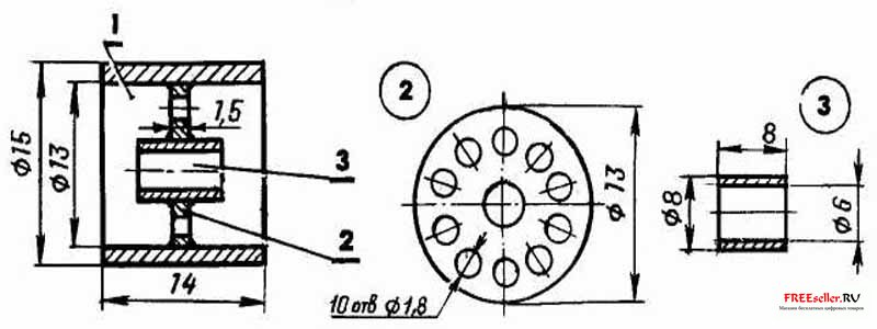 1 - трубка, 2 - звёздочка с отверстиями диаметром 1,8 мм, 3 - втулка.
