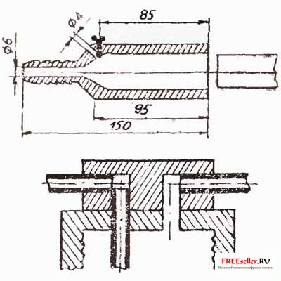 Чтобы двигатель не глох и не создавал в шланге слишком большое давление, для выпуска лишних газов просверлите в наконечнике отверстие диаметром не более 5 мм. С помощью болта (см. рис.) регулируется давление в канистре.