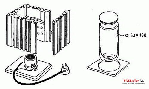 Оно может иметь произвольную форму и быть сделано из любого материала. В основании закрепляется стеклянный сосуд и скрытая под ним электролампочка. В боковых стенках сверлят несколько отверстий, служащих для охлаждения.