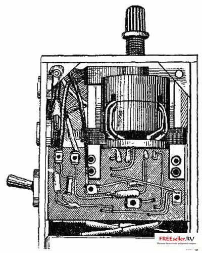 Ручка настройки (подстроечный сердечник катушки LA) выводится наружу через отверстие в боковой стенке корпуса.