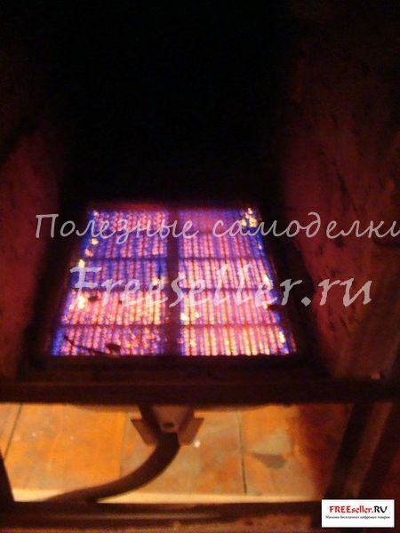 Если же решаем затопить печку с помощью дров, закрываем газовую горелку куском листового металла и топим дровами.