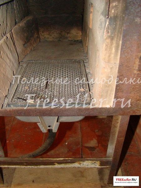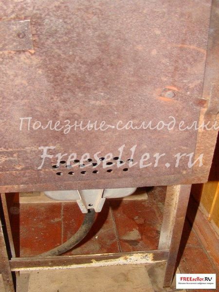 Просверлил внизу печки отверстия и вырезал дырку под газовую горелку, установил инфракрасную газовую с помощью саморезов.