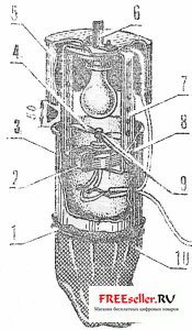 1 - резиновое кольцо, 2 - электродвигатель, 3 - корпус, 4 - вентилятор, 5 - крышка, 6 - подвеска, 7 - полоска-кронштейн, 8 - винт М4, 9 - шайбы, 10 - капроновый мешочек.