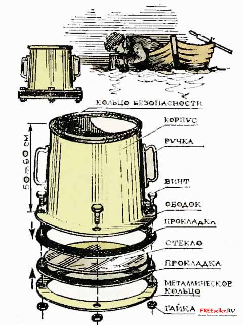 Надо учесть, что устройство обладает достаточно большим внутренним объемом и на него действует значительная выталкивающая сила. Поэтому, чтобы не пораниться об острые верхние кромки при наблюдении, их следует окантовать резиной или другим мягким материалом.