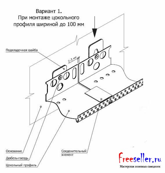 Рис.1., рис.2. Схема монтажа цокольного профиля.