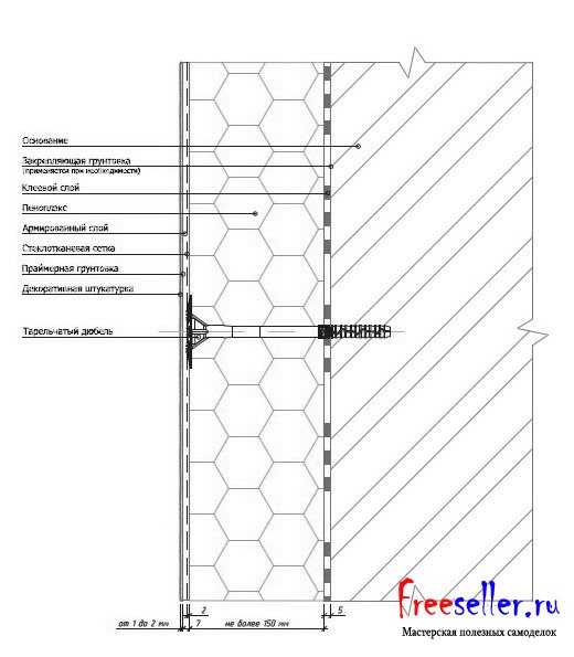 1) Оштукатуривание фасада - самый надежный способ, который не влияет на долговечность и качество плит пеноплекса.