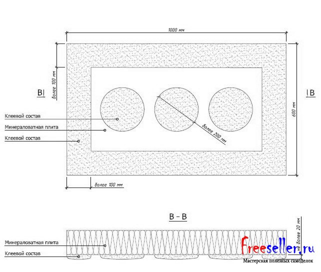5) При раскрое теплоизоляционных плит устанавливаемых на плоскости необходимо вести смещение вертикальных швов (по типу кирпичной кладки) не менее 200 мм. Недопустимо расположение вертикальных стыков плит на одной линии.