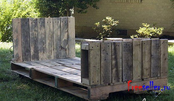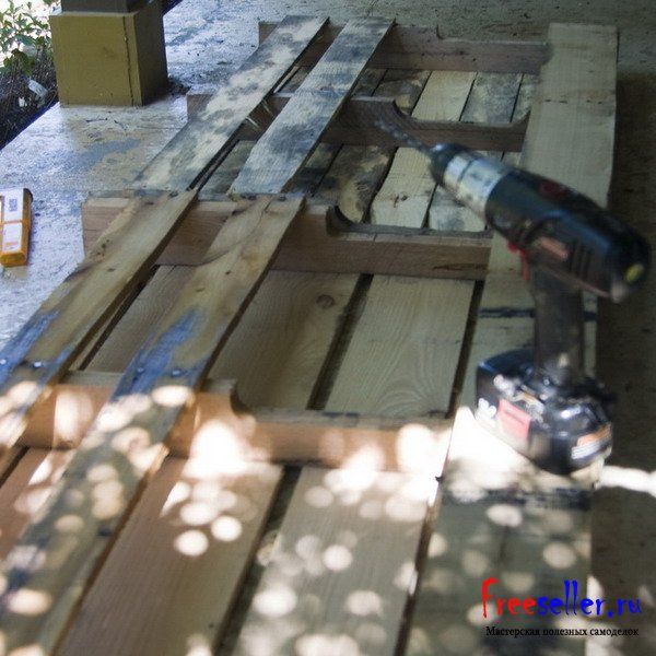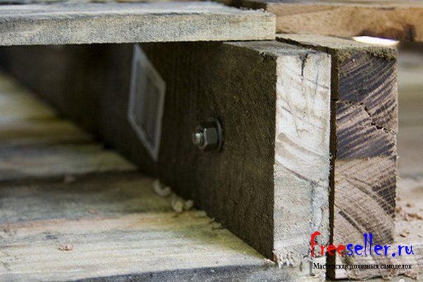 С помощью болтов с гайками прикрепите к основанию кровати спинки вырезанные из 2 поддона.