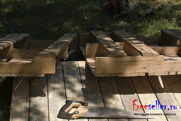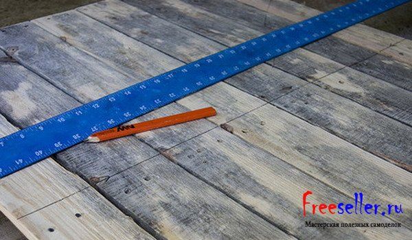 Из 2 поддона размечаем и выпиливаем 3 спинки для кровати.
