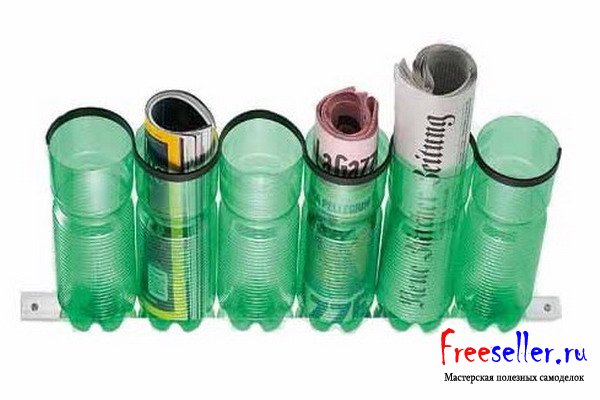 Подставка из пластиковых бутылок с настенным креплением под мелкие вещи: тетради, газеты, ручки и т.п. своими руками.
