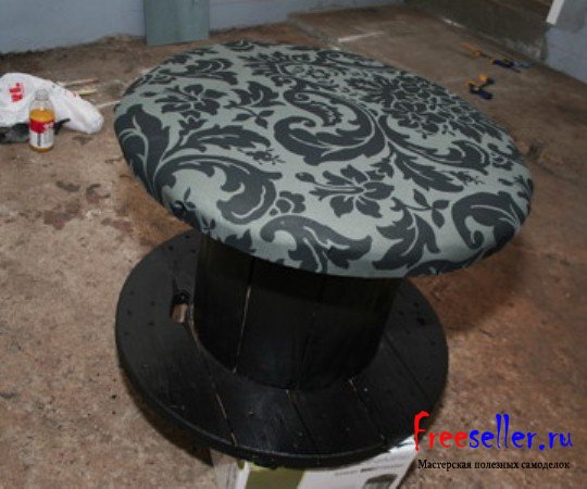 Как сделать пуфик из тубы под кабель своими руками? Если у вас залежались тубы из под кабеля можно использовать их для изготовления мебели, например пуфика.