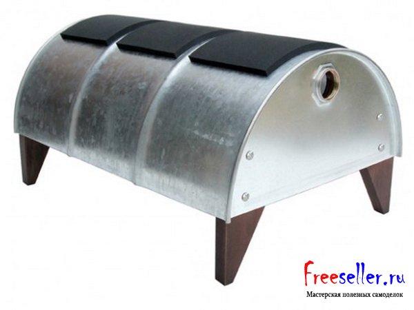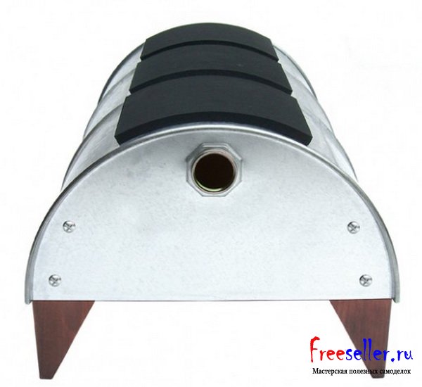 В качестве ножек можно использовать доски, которые закрепить к бочке с помощью болтов.