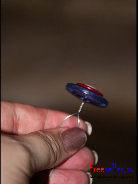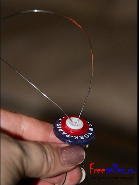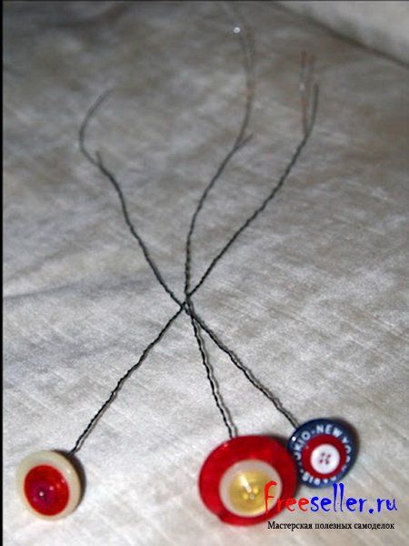 Проволока просовывается через отверстия в пуговице и скручивается с помощью рук или кусачек пассатижей образуя стебли.