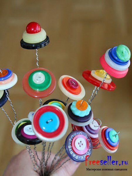 Изготовление искусственных цветов из пуговиц и проволоки своими руками.