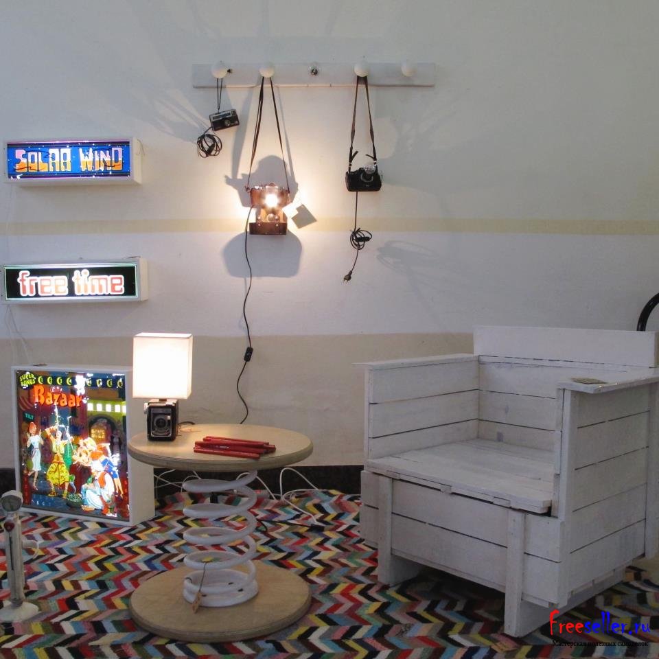 При изготовлении можно использовать круглые сидушки от старых табуреток, или выпилить круги самостоятельно с помощью лобзика или фрезера из фанеры. Тщательно обработать все деревянные детали шлифовальной бумагой, и покрыть лаком.