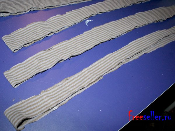 4. Отрежьте три полосы ткани из нижней части рубашки (приблизительно 1 дюйм шириной для каждого).