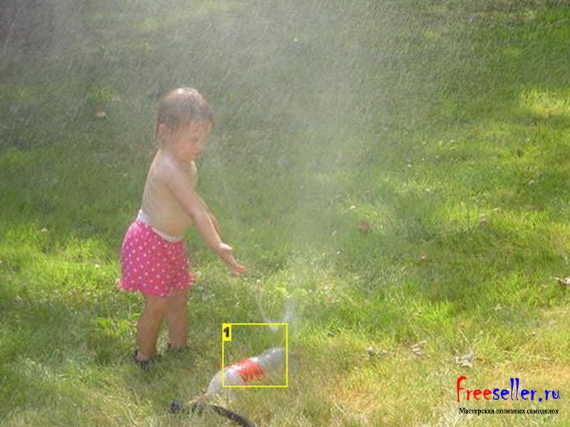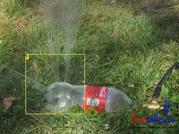 Для этого необходимо прорезать несколько отверстий внизу пластиковой бутылки а на крышку прикрутить кран, подсоединить к шлангу и все готово.