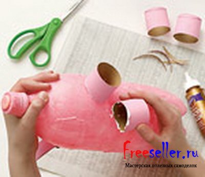 3) Вырежьте из картонной трубки, покрашенной в розовый цвет: