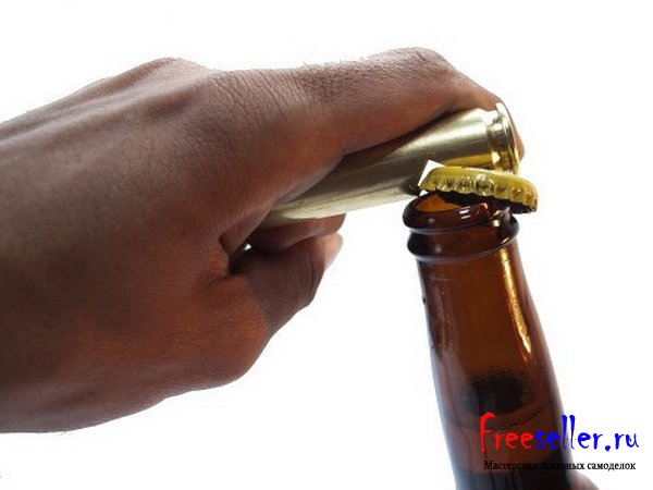 Если у Вас сохранились использованные гильзы от патронов, можно сделать из них, например вот такую вот самодельную открывалку для пробок пивных бутылок.