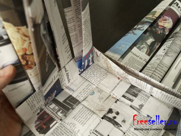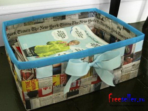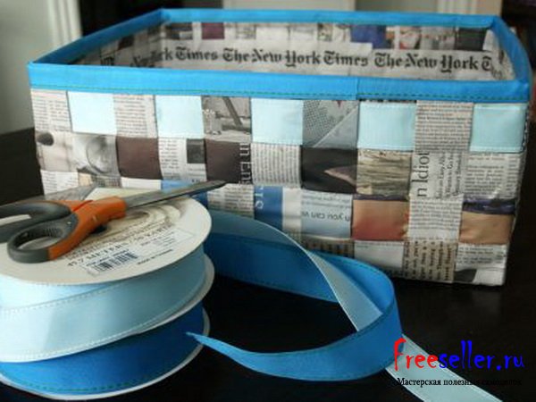 Самодельная корзина для различных вещей из старых ненужных газет.