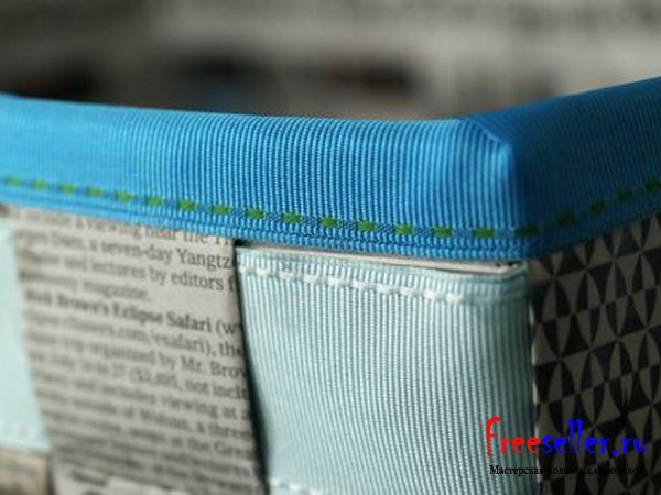 Наклейте на верх боковых стенок ленту, и аккуратно прошейте нитками.