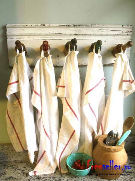 Конструкция самодельной вешалки для кухонных полотенец из подручных материалов.