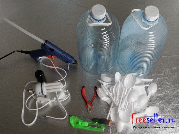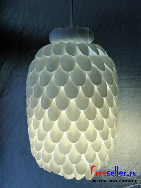 Самодельная дизайнерская люстра из одноразовых пластиковых ложек и пластиковой бутылки/