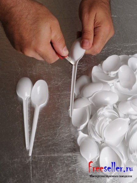 С помощью кусачек откусите у пластиковых ложек ручки.