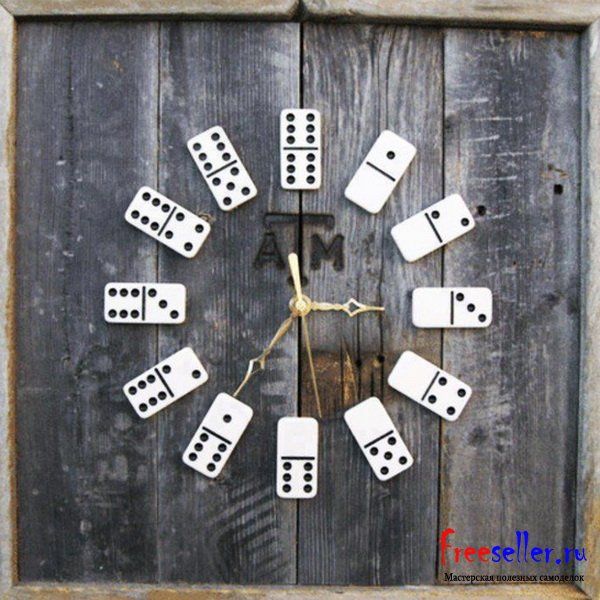 Самодельные настенные часы, у которых вместо цифр - фишки от домино. Очень оригинальная и простая идея.
