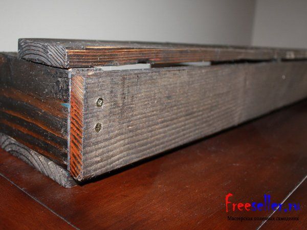 Отшлифуйте изготовленную полку мелкой шлифовальной бумагой, и покройте морилкой или другой пропиткой для дерева.