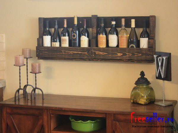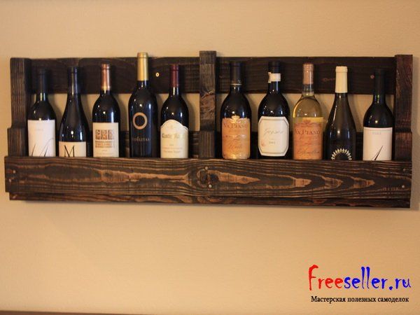 Самодельную винную полку довольно быстро и просто можно изготовить из 1 поддона.