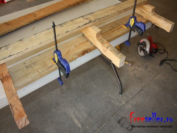 На 3 брусках, которые образовывали каркас поддона, необходимо сделать полукруглый надрез, с помощью лобзика и других вспомогательных инструментов.