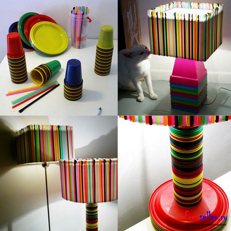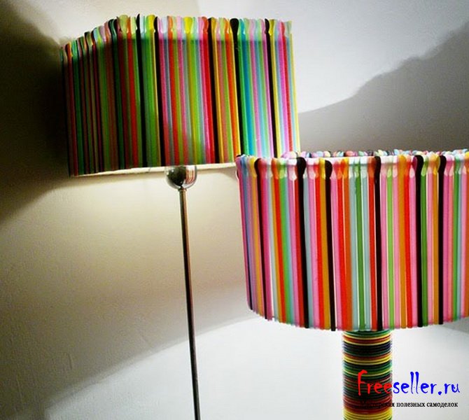 Самодельные светильники и люстры из обычных пластиковых трубок соломинок.