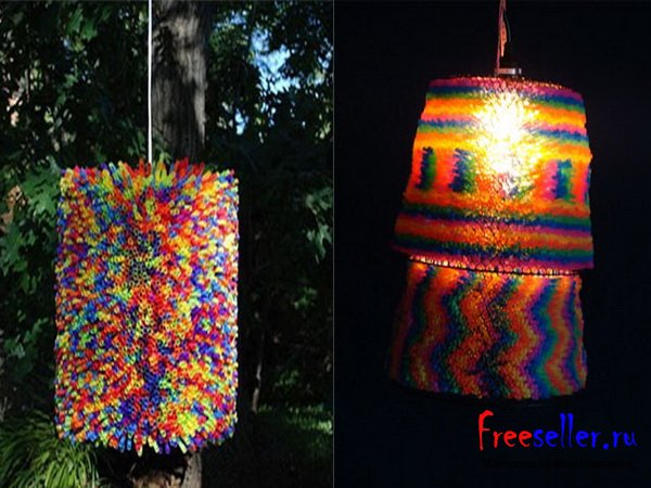 При изготовлении этих светильников в ход пошли пластиковые тарелки и стаканы.