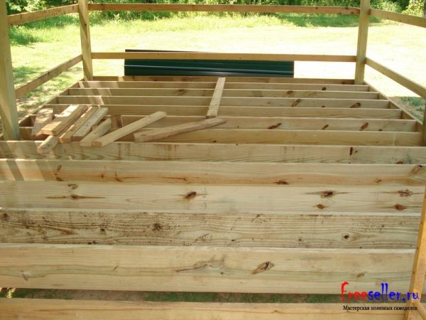 После монтажа пола, появилось место внутри дома для складирования досок.