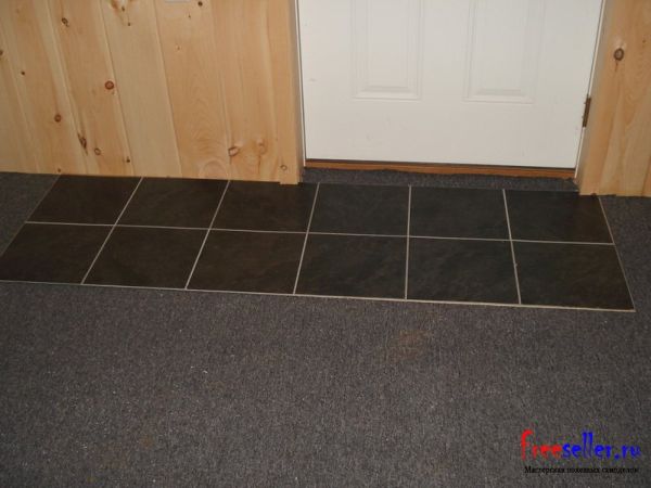 Наклеили ПВХ плитку на фанеру. Получили место для обуви.