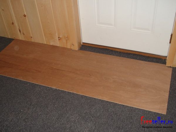 Кусок фанеры вырезали под наклейку ПВХ плиткой.