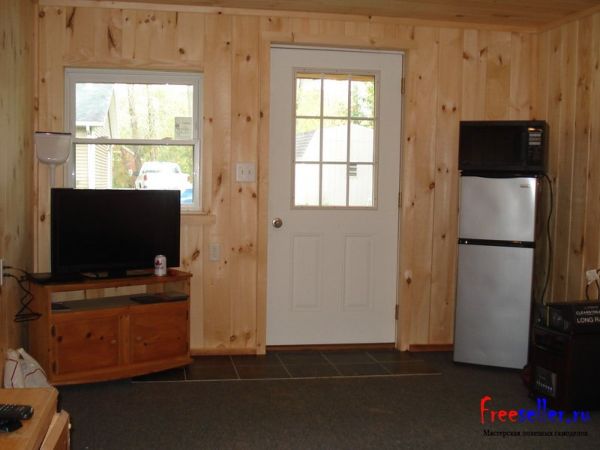 Завершили все работы по внутренней отделки дома, установили мебель, холодильник. обогреватель и телевизор.
