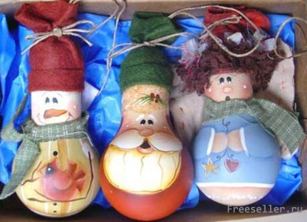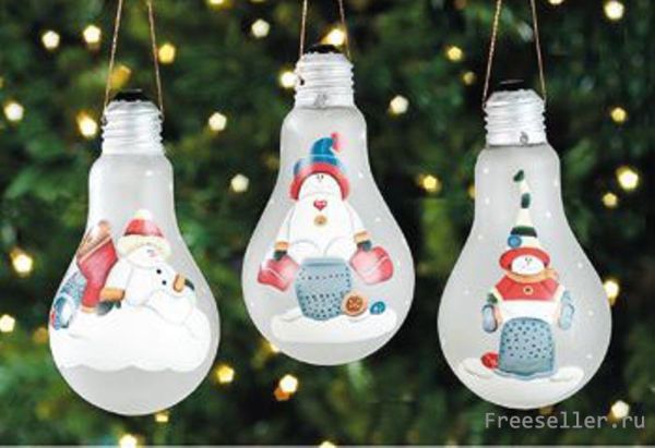 Делаем самодельные елочные игрушкисвоими руками из обыкновенных лампочек.