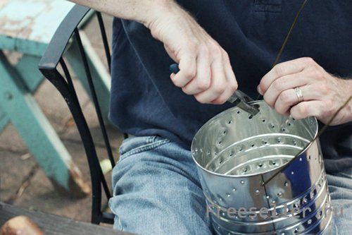 Осталось приделать проволочную ручку-подвеску, а заодно еще раз обработать верхний край банки, чтобы нельзя было пораниться.