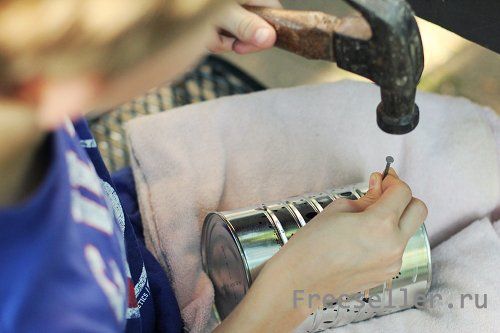 Совместное изготовление вместе со старшими детьми светильника из ненужной консервной банки может заодно послужить неплохим практикумом по безопасному обращению с огнем.