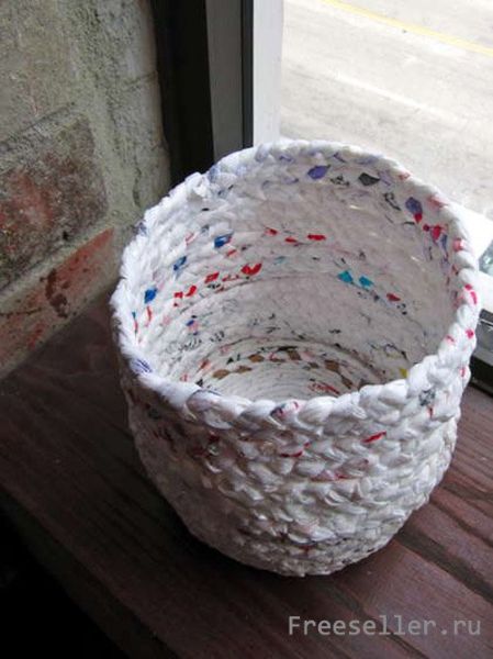 Обычные упаковочные пакеты могут послужить отличным материалом для изготовления оригинального кашпо.